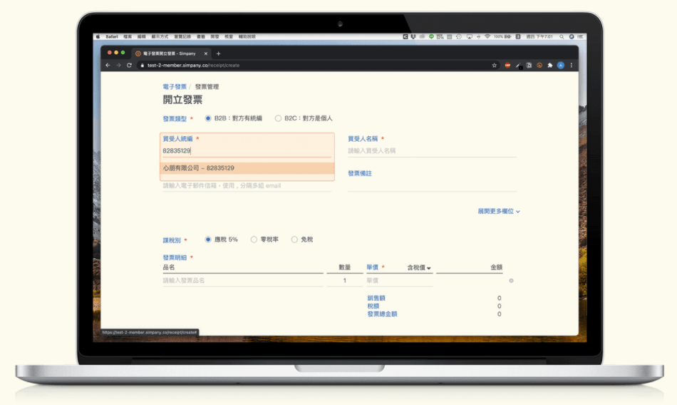 讓公司行號可以在 Simpany 會員專區 裡面輕鬆點一點,就完成開立電子發票了!從此不用擔心手殘寫錯發票、不用再研究大寫的數字怎麼寫、不用去郵局排隊排到睡著只為了寄出紙本發票了!當然,更大的好處是,廠商的 email 即時就會收到發票,秒速請款,讓公司現金流更健康。
