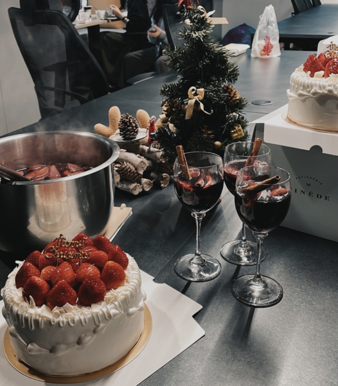 上週的聖誕節,同事也相揪煮聖誕熱紅酒,還有小天使請大家吃草莓蛋糕,草莓蛋糕🍰+熱紅酒🍷 從此 94 聖誕節🎄的味道。