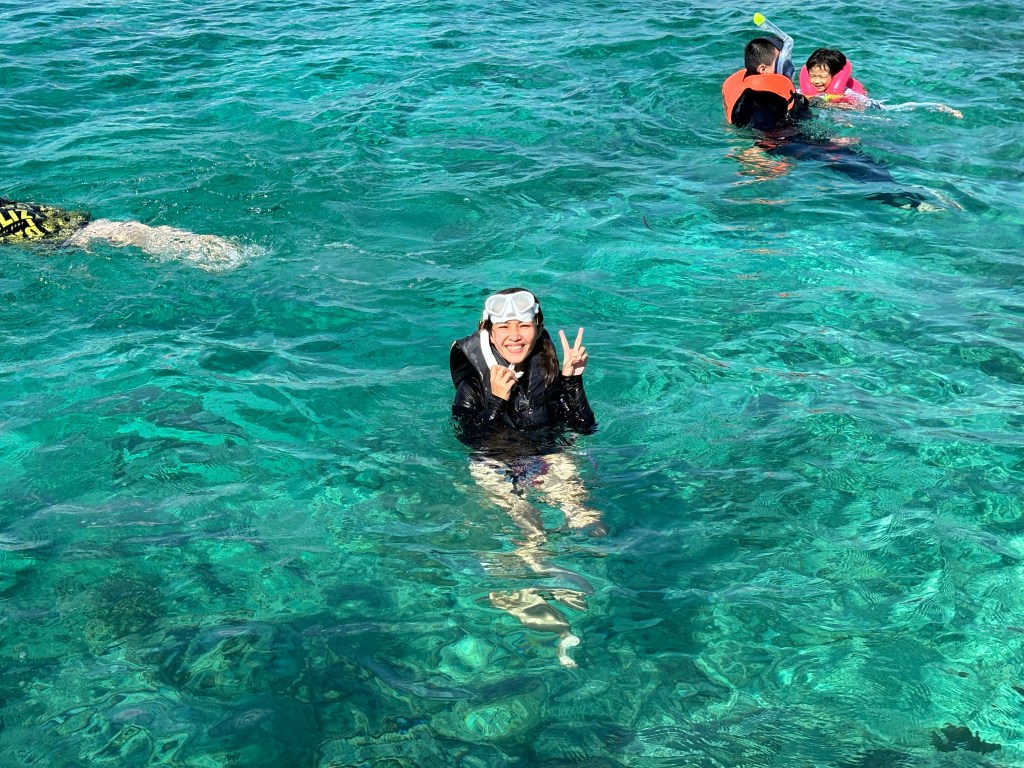 有些同事是沒有浮潛過、平常也很少玩水,海域浮潛時看到大家鼓起勇氣下水,