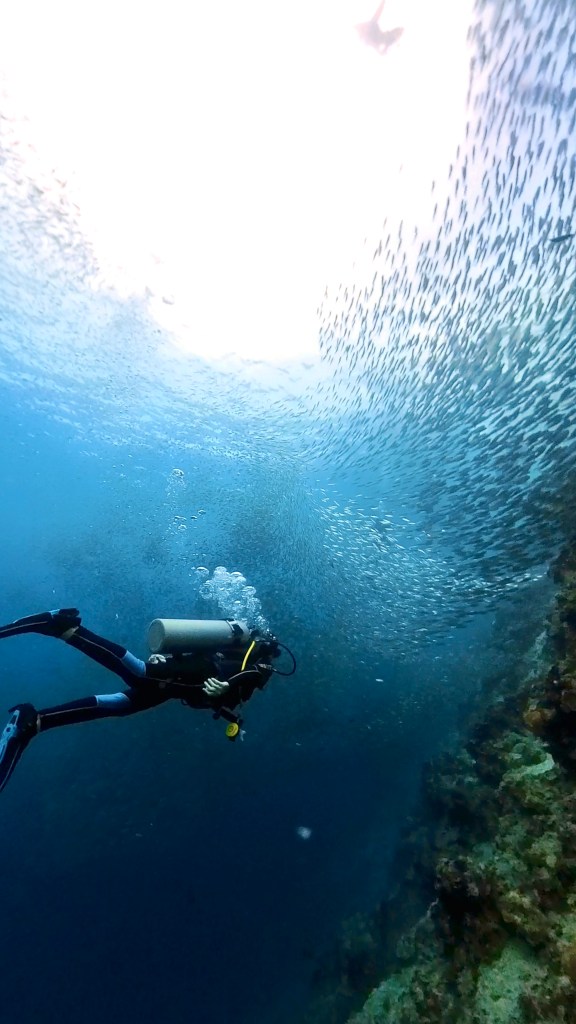 我們到了莫亞礁浮潛看沙丁魚,我和部分同事選擇深潛看沙丁魚,